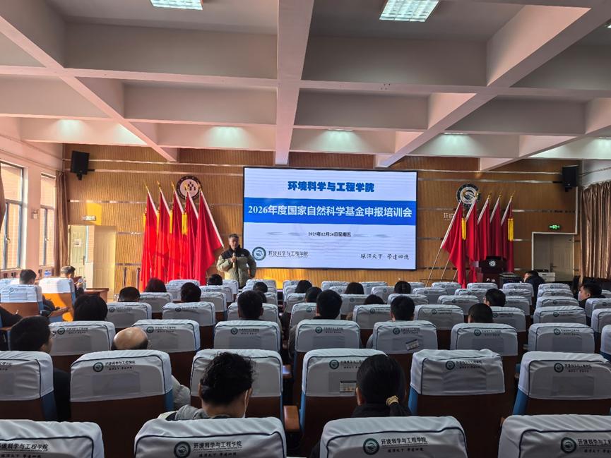 为提升我院教师国家自然科学基金申报成功率,精准把握政策要点与申报技巧,环境科学与工程学院于2025年12月26日上午9:30—12:00在环境楼A400针对新进青年教师及有计划申报项目的老师们举办了2026年度国家自然科学基金申报培训会。此次培训邀请了科技院王奇老师和三位我院项目申报经验丰富的教师代表,为我院教师分享了宝贵经验,也提供了许多中肯的申报建议。