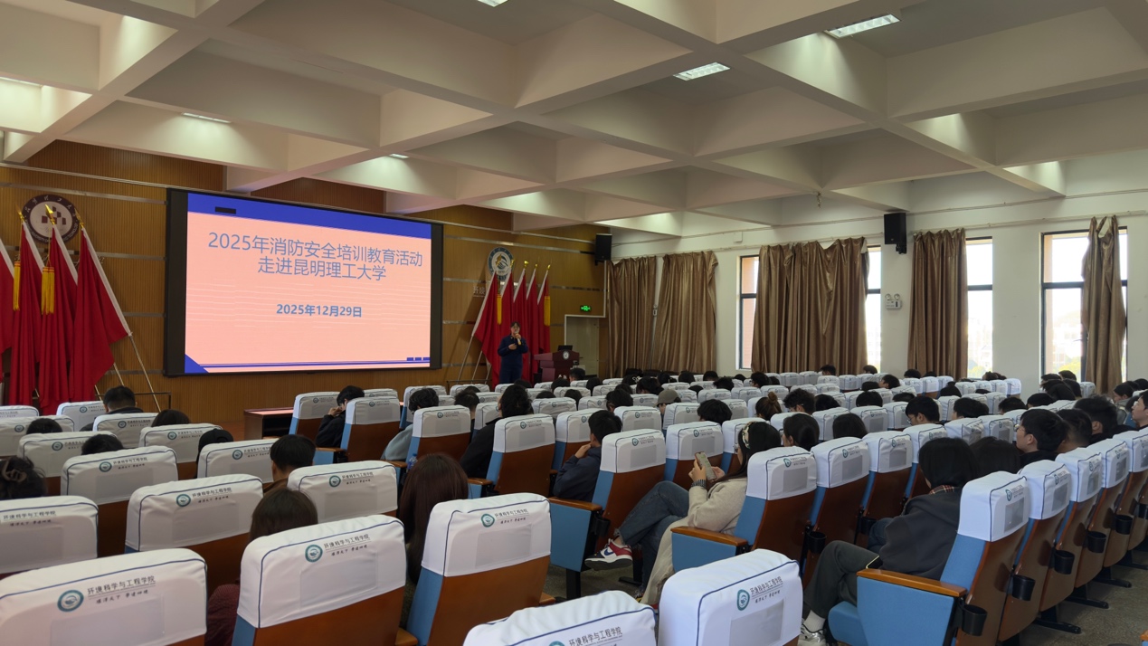 为深入贯彻《云南省教育厅关于做好2025年消防宣传月活动的通知》要求,落实学校《2025实验室安全宣传教育年系列活动方案》部署,进一步强化实验室安全管理,提升师生安全防范意识与应急处置能力,2025年12月29日下午,昆明理工大学环境科学与工程学院特邀呈贡区消防救援大队10名专业人员,在学院开展了消防应急专项培训与实战演练。学院副院长黄斌、实验室主任展巨宏等教师和120余名研究生共同参与此次活动。