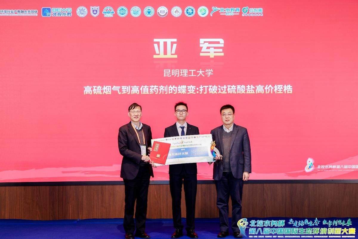 大赛评选出冠、亚、季军,同时设立创新引领组织奖、特别贡献奖、最佳人气奖、最佳科技成果奖、最具商业潜力奖、最具转化价值奖。昆明理工大学环境科学与工程学院报送的《从高硫烟气到高值药剂的蝶变:打破过硫酸盐高价桎梏》项目获得总决赛亚军,昆明理工大学获评“特别贡献奖”。
