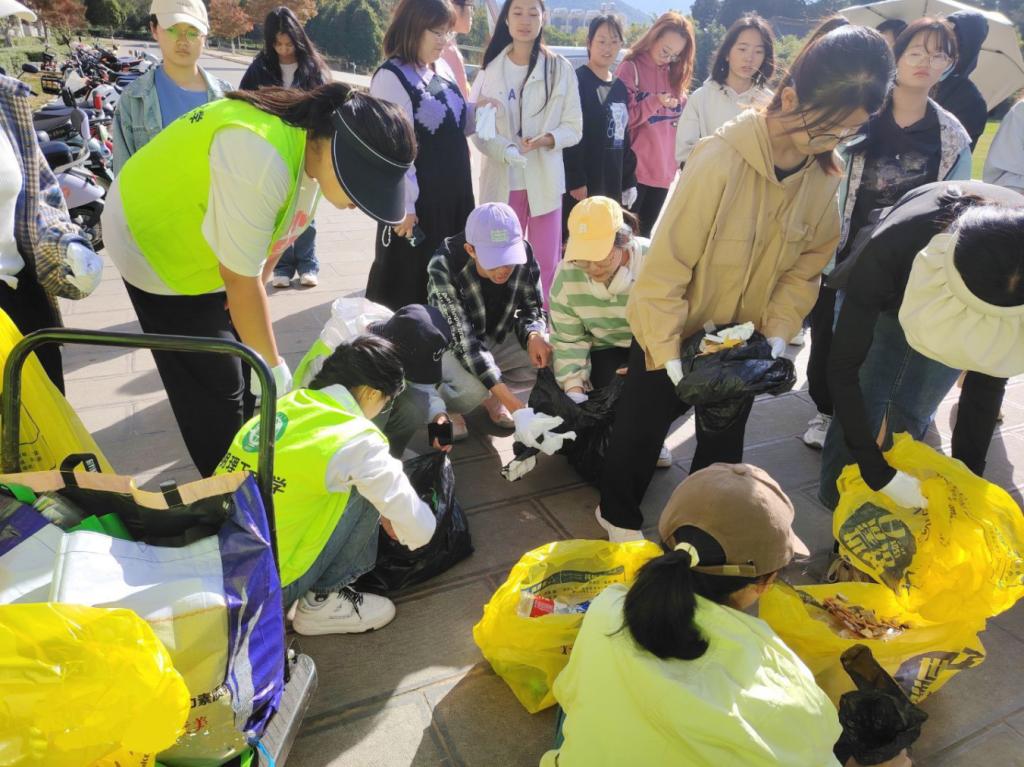 第二个环节,全体志愿者同学们回到公教楼前的大草坪,将回收到的垃圾进行分类回收,并向同学们分享关于垃圾分类有关的知识。然后进行合影留念签到,并向同学们发送相关纪念品小礼物。活动最终圆满结束。