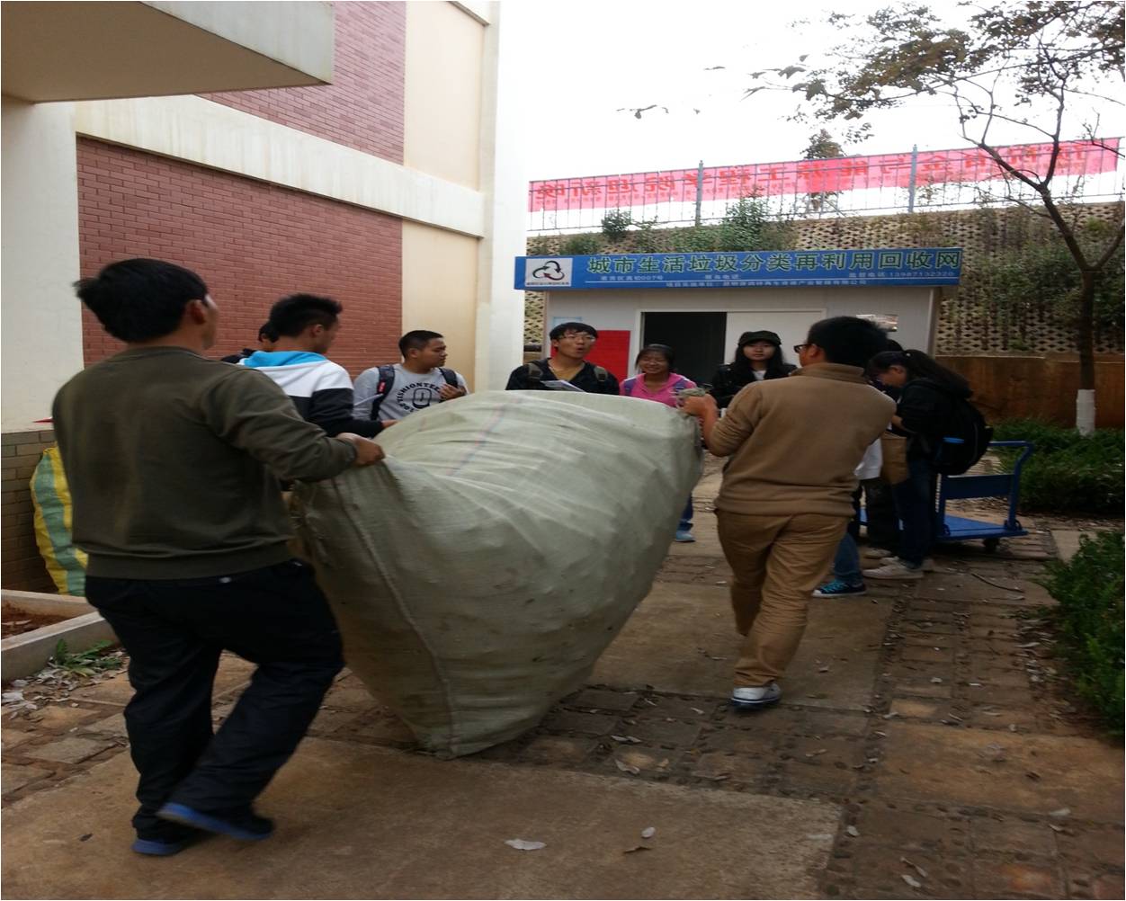 10月16日15:00,活动正式开始,青年志愿者协会的所有志愿们按照所在部门和队伍被分别分配到记录数据,整理垃圾,称量废品三个小组当中。同时,青年志愿者协会向广大前来提供废品的同学们承诺,协会会将废品兑换成水票回馈给前来捐赠的同学。最后,青年者协会向每一位在场的同学分发了废品回收袋,以便下次回收活动顺利开展。