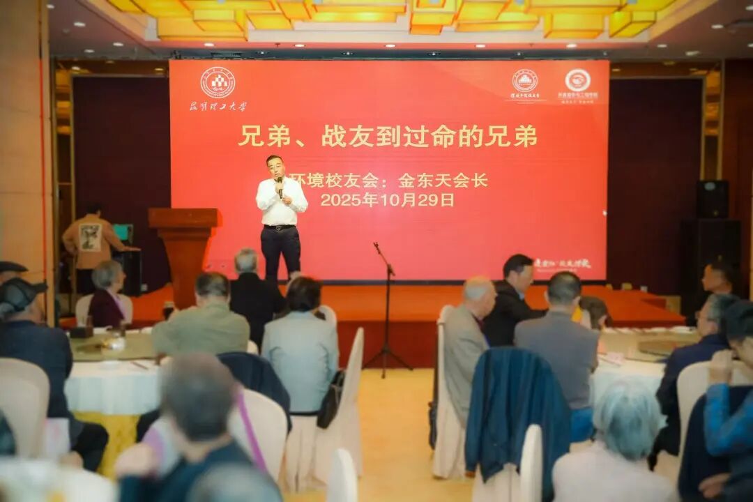 活动中,环境学院校友分会会长金东天结合自身丰富的人生阅历与实践经验,以《兄弟、战友到过命的兄弟》为主题作分享。他在分享中强调,要传承师长的榜样力量,同时以自身行动为后辈树立标杆,通过协作凝聚团队合力,实现个人成长与集体发展同频共振、共赢共进。