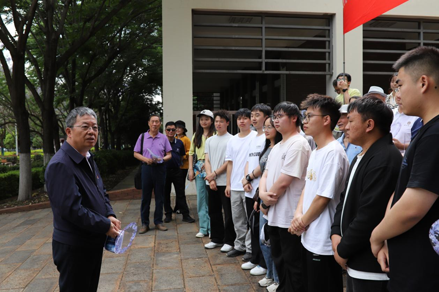 四载青葱岁月,一生绿色情缘。在蓝花楹如紫色云霞般盛放的季节里,昆明理工大学环境学院校友会组织环工人于2025年5月8日下午,重返昆明理工大学呈贡校区环工蓝花楹校友林,共赴一场穿越时光的浪漫之约,重走芳华路,再叙同窗情。参加活动的有学院老教师、老领导代表的精神传承者、学院领导和教师代表的现代耕耘者、学生干部代表的未来守护者、校友理事代表的创新创业先锋者和校友工作办公室老师们共计50余人,校党委副书记蔡金红与校党委常委、副校长潘学军出席了活动。
